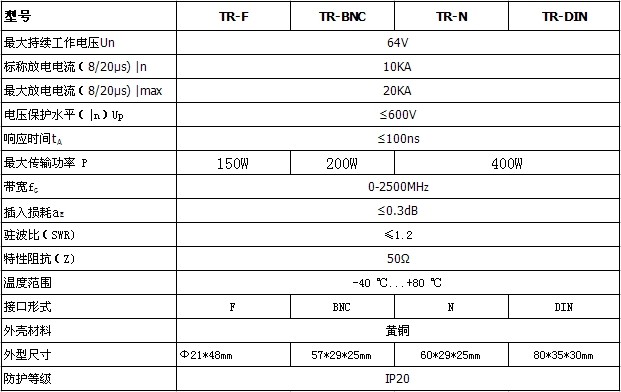 TR系列產(chǎn)品開關(guān)型天饋電涌保護器用以防止因饋線感應(yīng)雷擊過電壓而對天線及收發(fā)設(shè)備造成的損害,適用于無線通信,移動基站,微波通信,廣播電視等同軸天饋系統(tǒng)信號防雷浪涌保護,安裝于防雷分區(qū)LPZ0A-1及后續(xù)分區(qū)